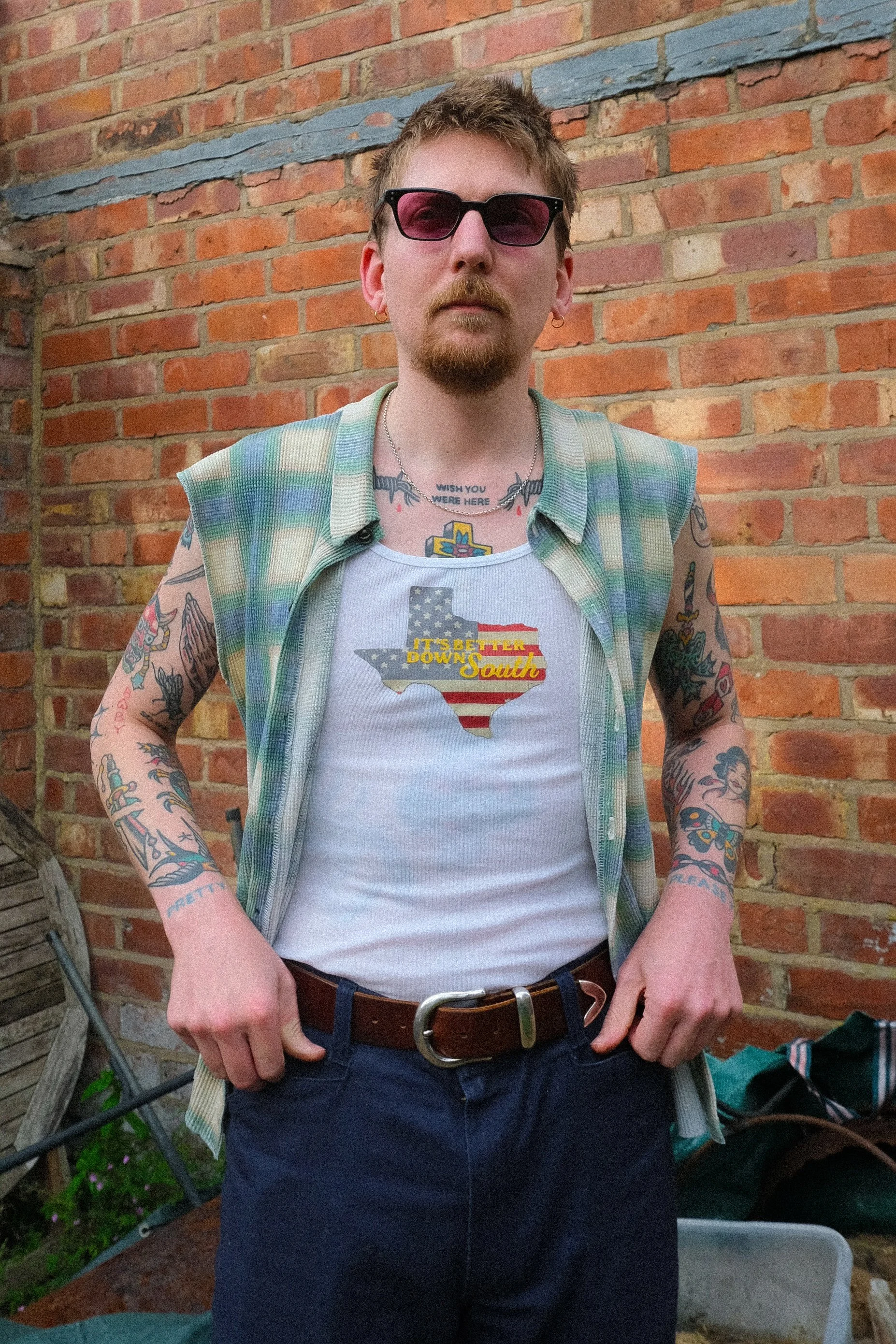 We use secondhand blanks for every drop — from nostalgic American Apparel to well-worn Hanes and classic Fruit of the Loom. It’s our way of keeping things low-impact and full of character. Each piece is one-of-a-kind; no two are the same.